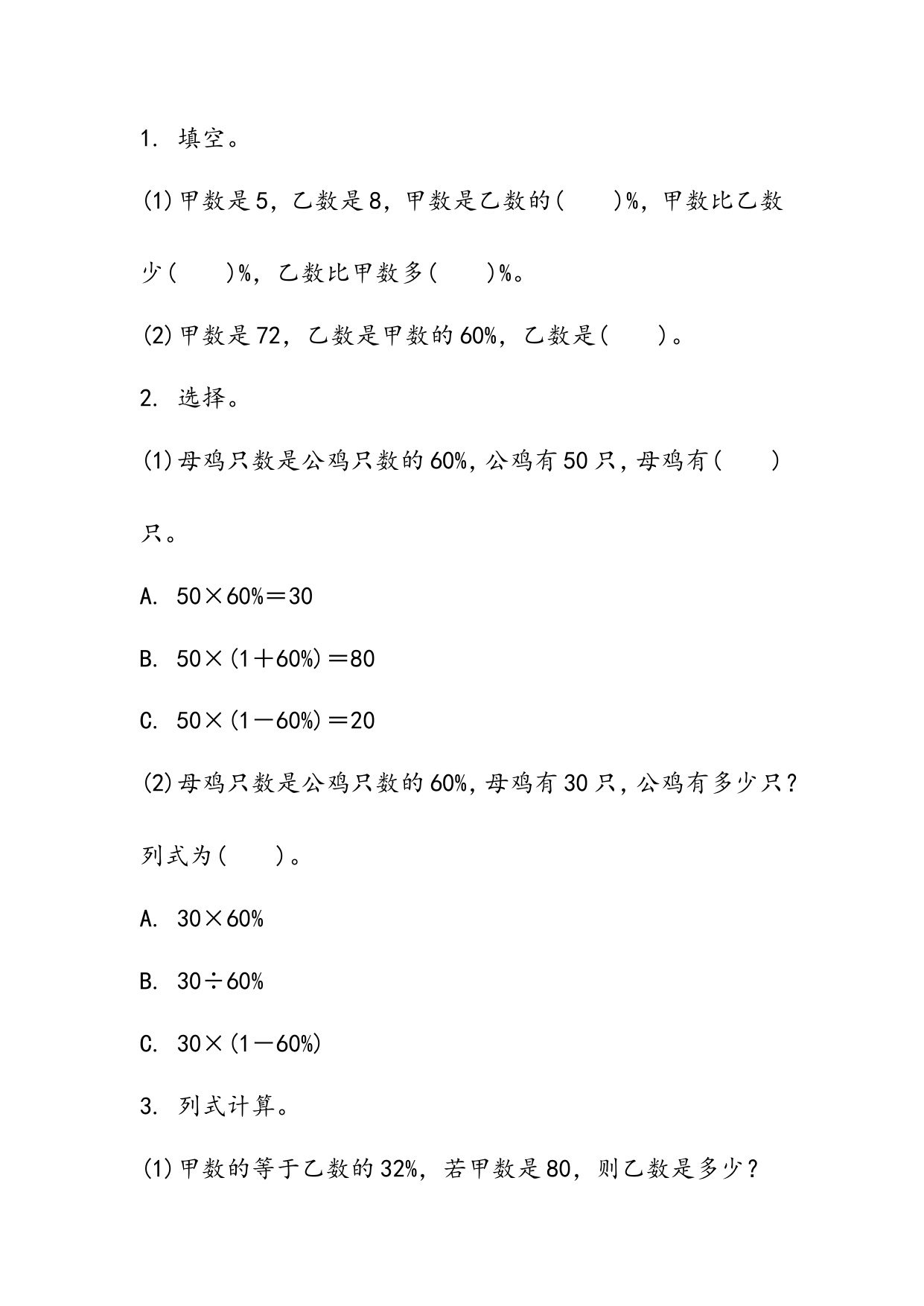 上一篇:六上数学课时练-5-1 求一个数比另一个数多(少)百分之几