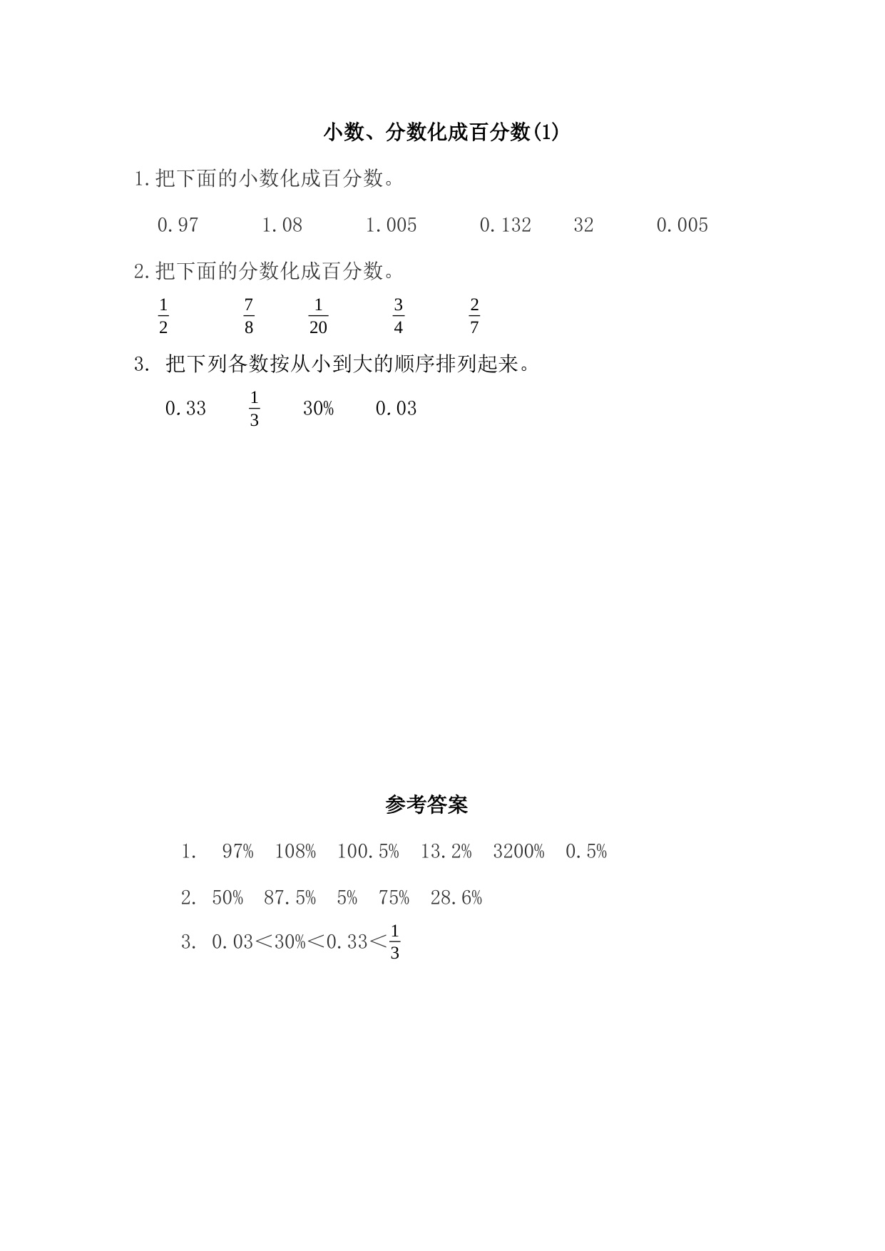 六上数学课时练-4-2 小数、分数化成百分数(1)