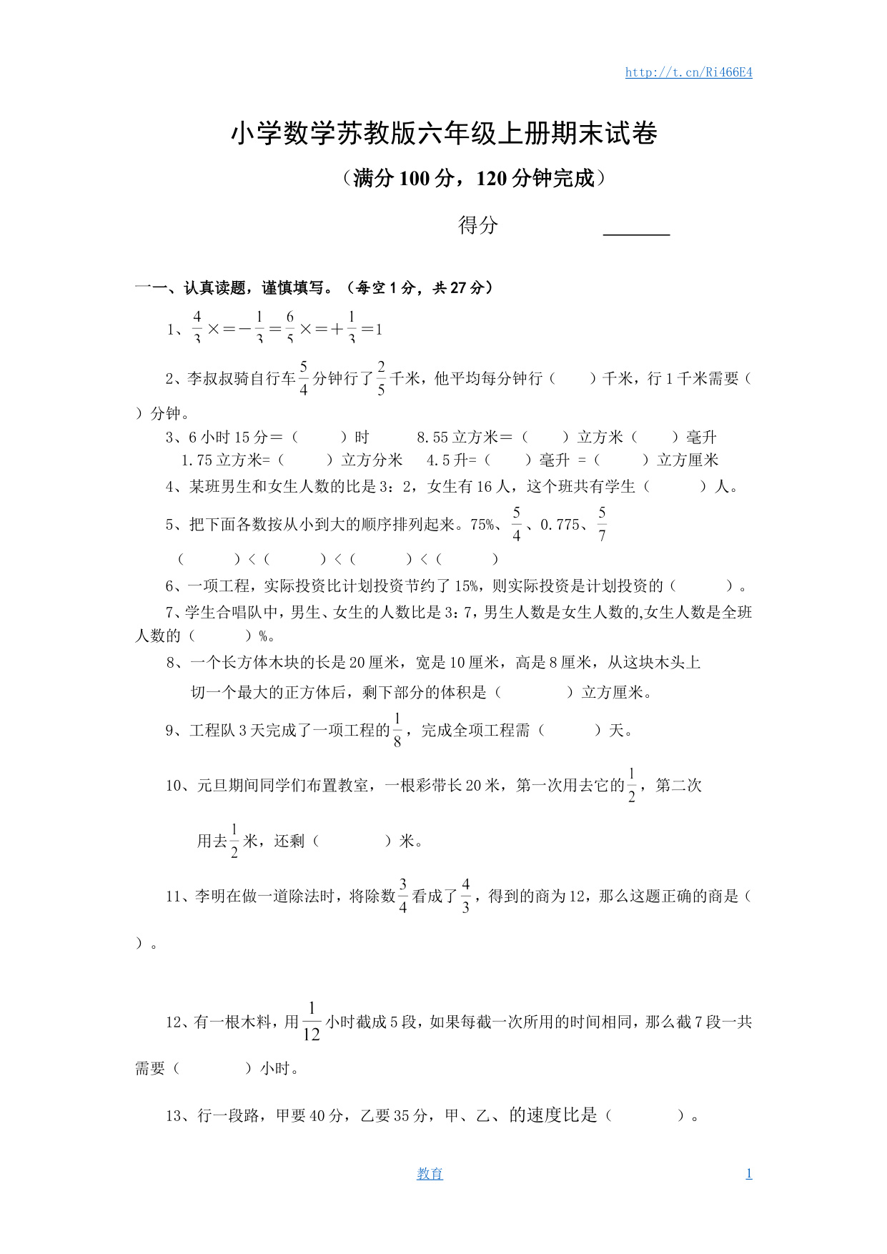 下一篇:苏教版数学六年级上学期期末测试卷14