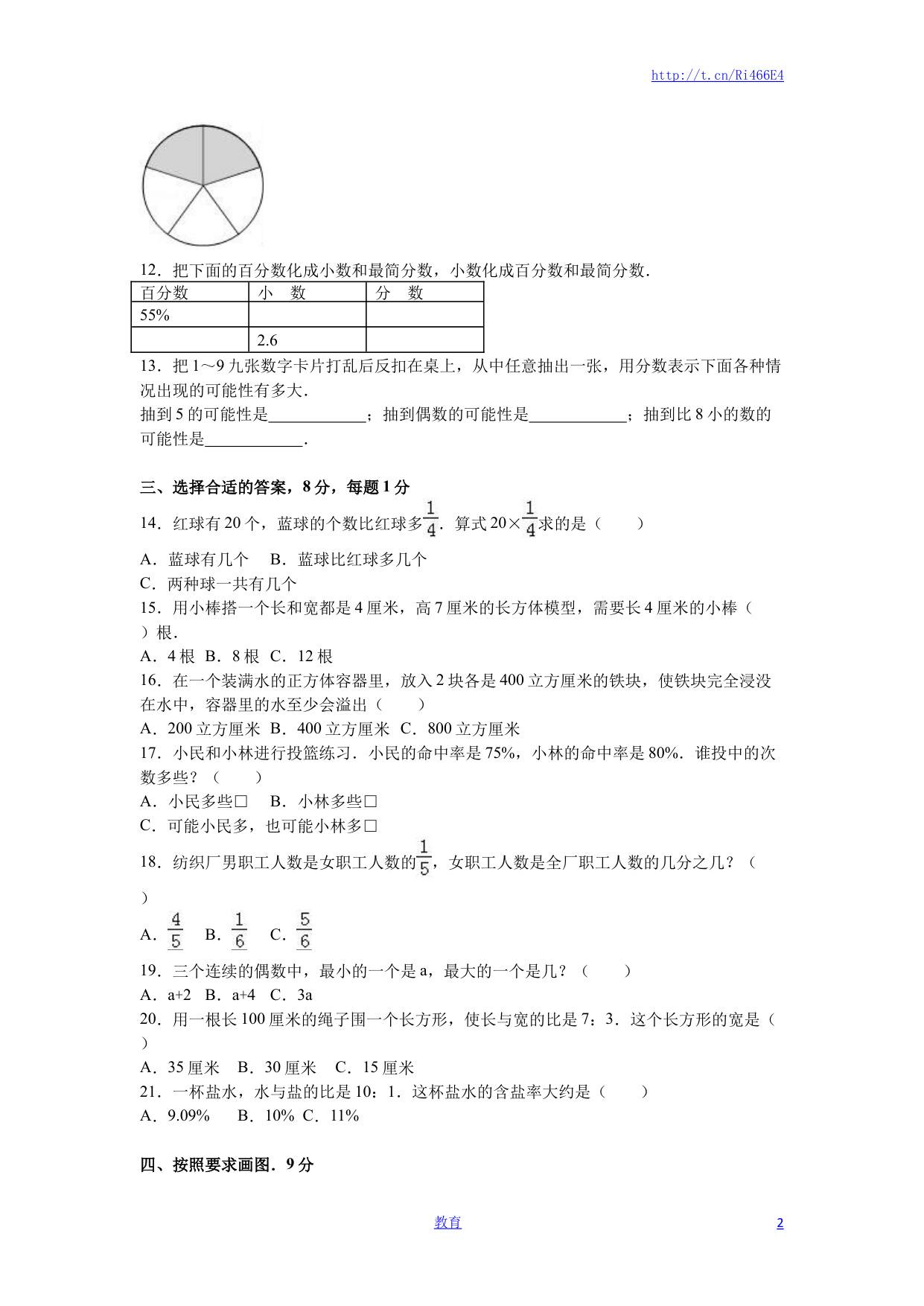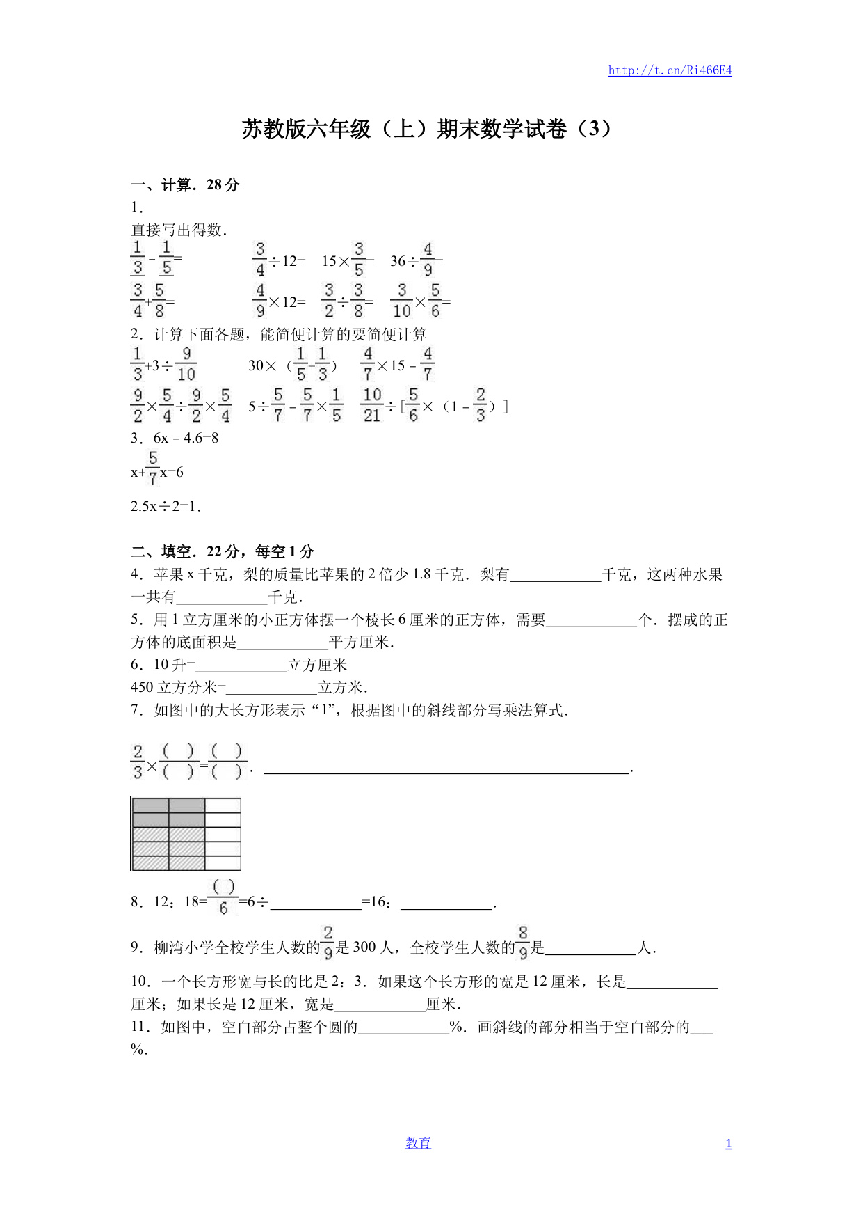下一篇:苏教版数学六年级上学期期末测试卷6