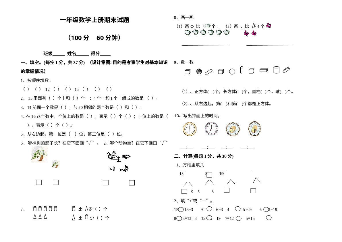 下一篇:小学一年级上册数学期末试卷及答案分析
