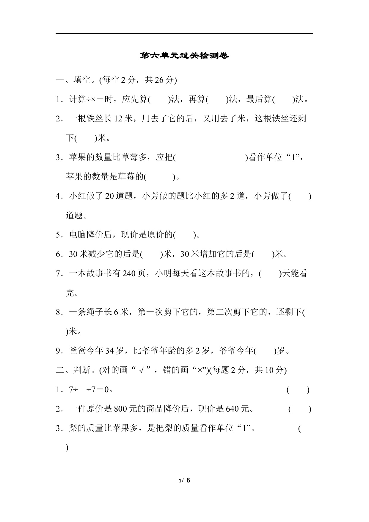 上一篇:六上数学第六单元跟踪检测卷