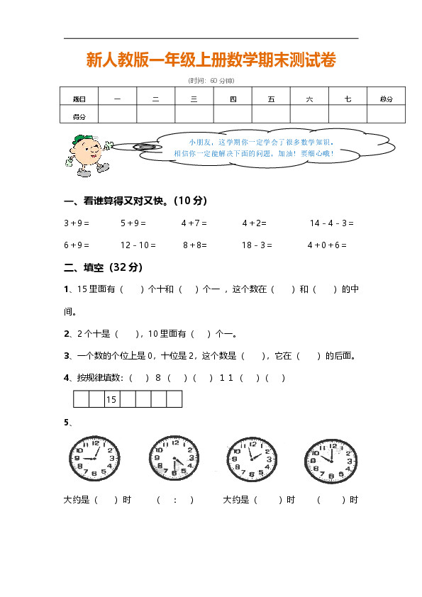 下一篇:一年级数学上册期末考试题