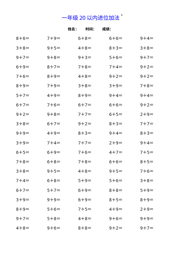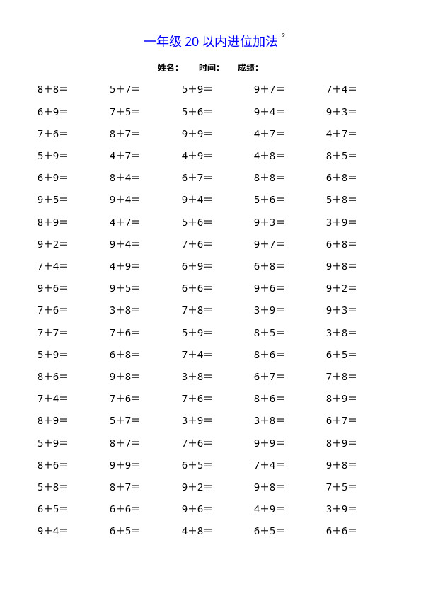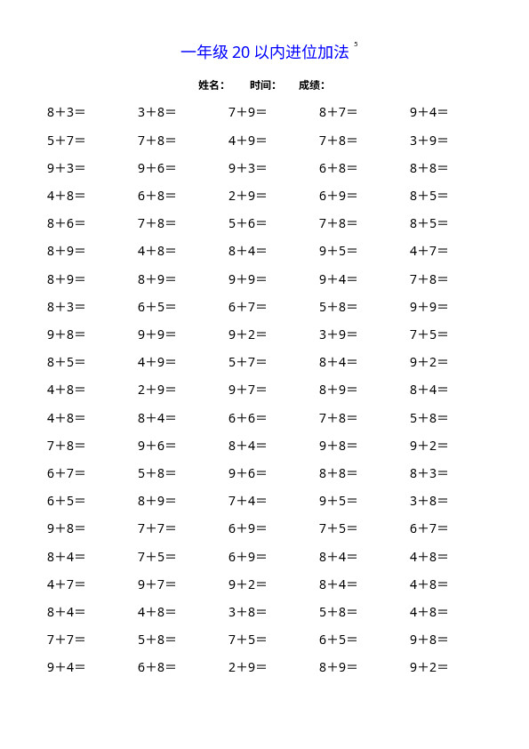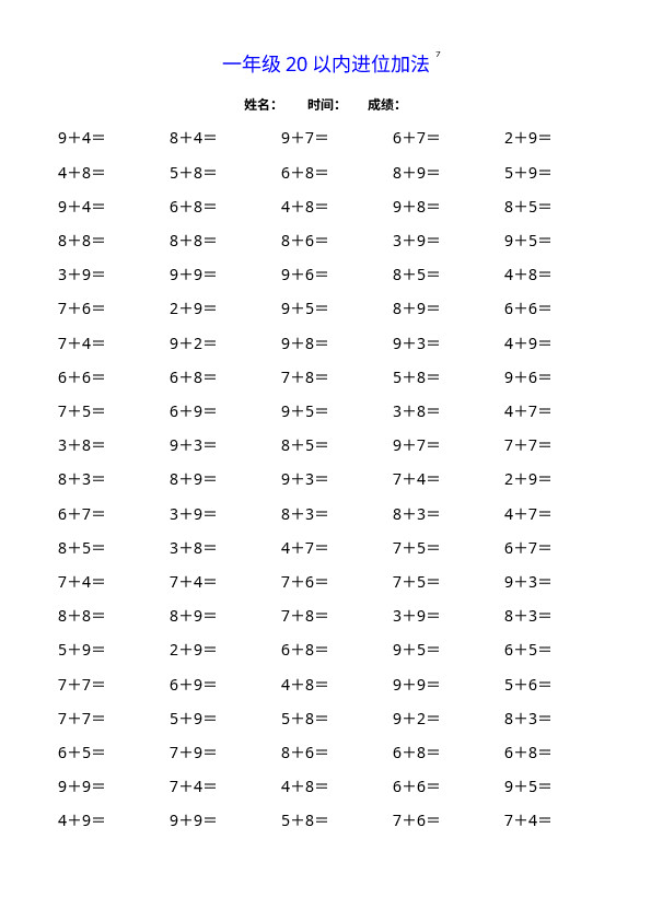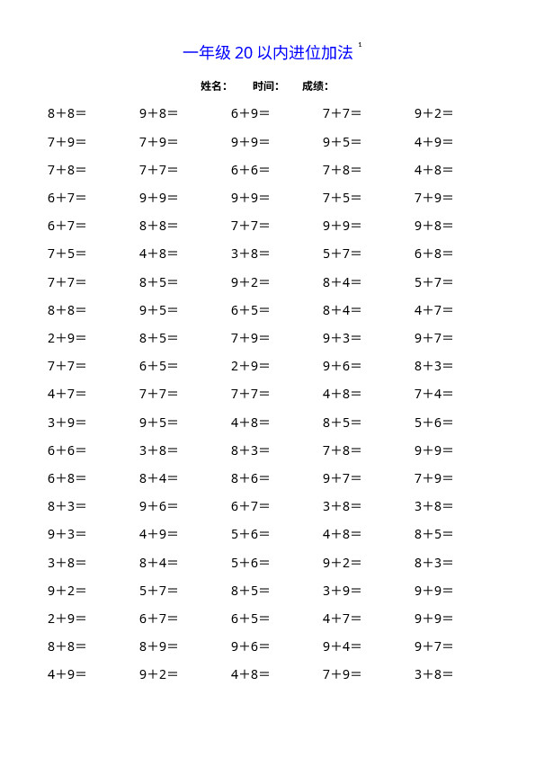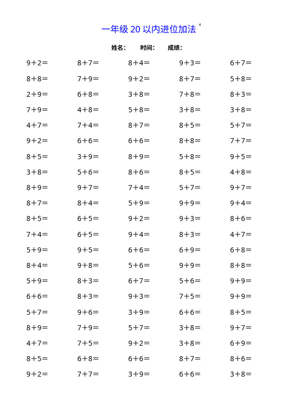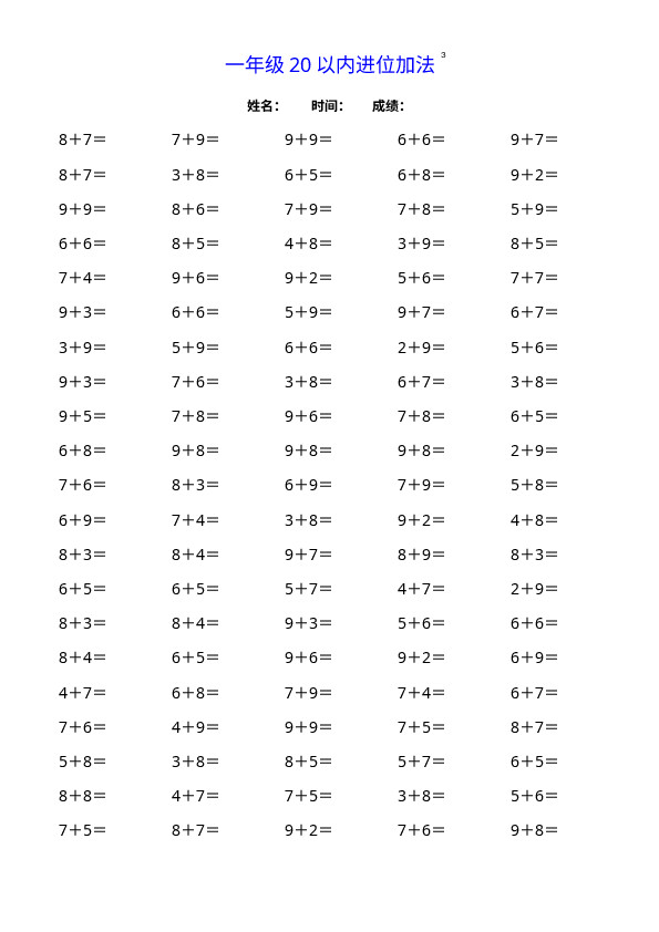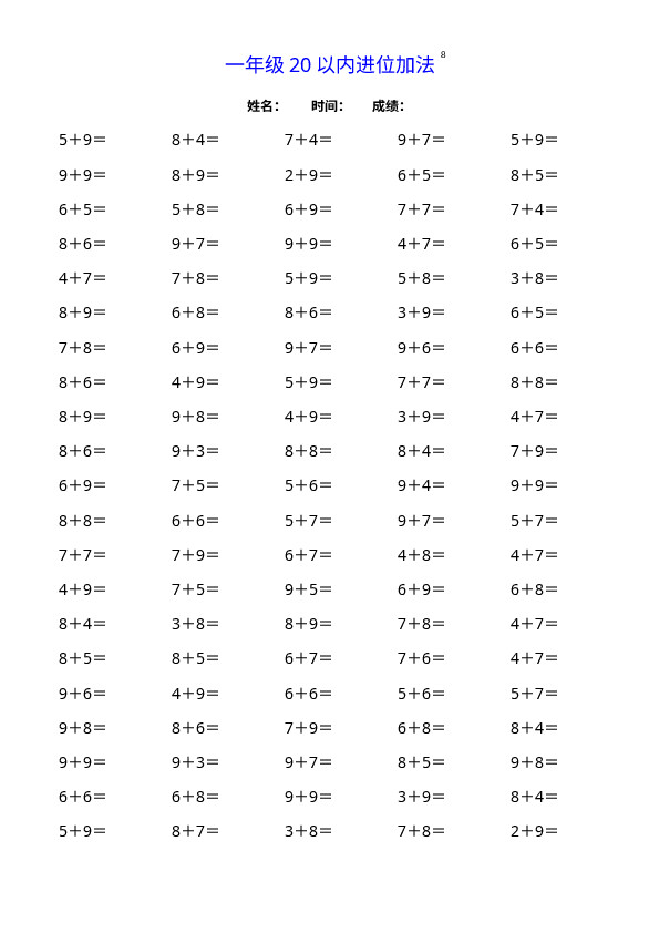 下一篇:一(上)数学20以内连续加法口算