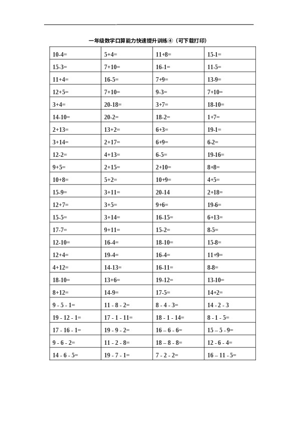 下一篇:一(上)数学口算能力快速提升训练⑤