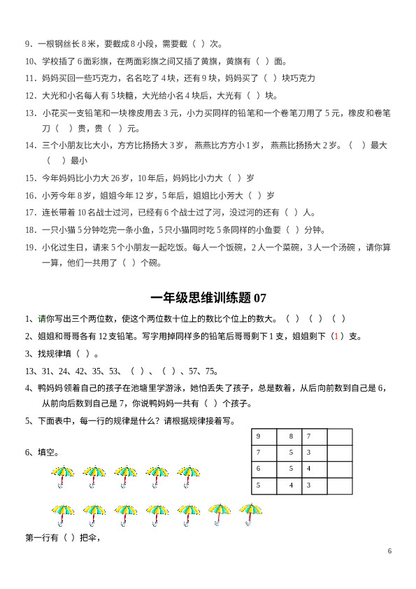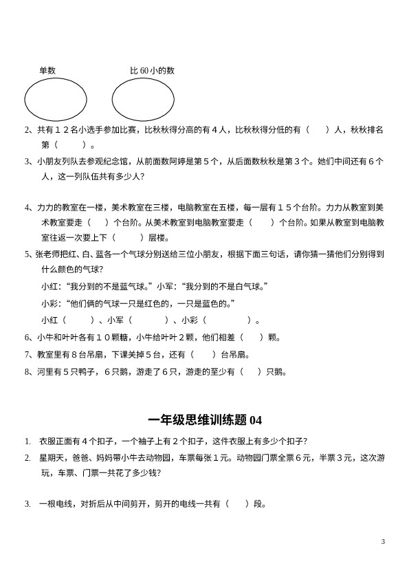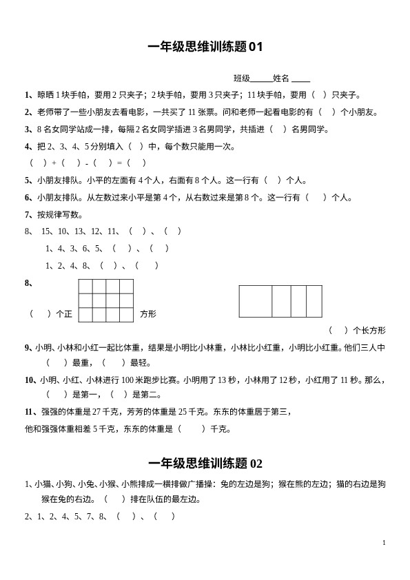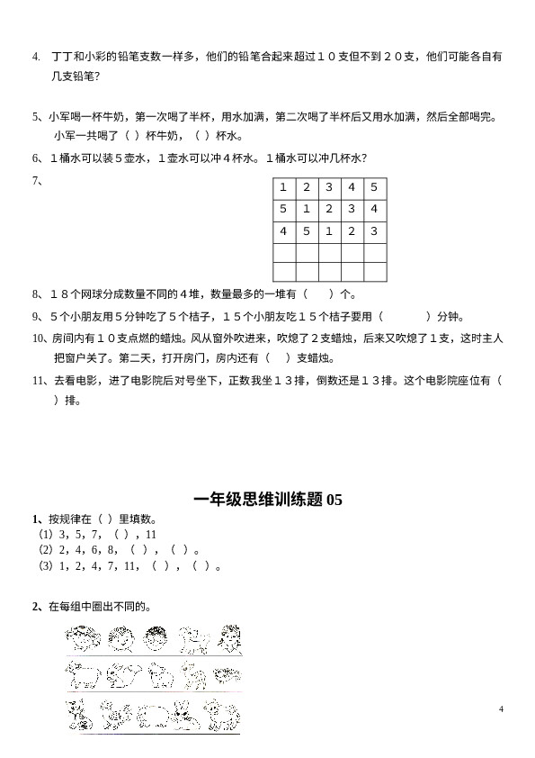 上一篇:小学一年级上册数学思维训练20题