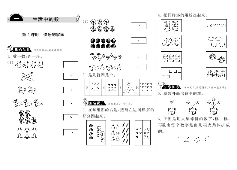 一年级上册-课时练习题+答案-第一单元生活中的数课时:1(北师大) 资料为PDF格式,请下载后使用相应软件打开。