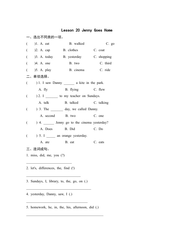 下一篇:课时练Unit 4 Did you have a nice trip - Lesson 21
