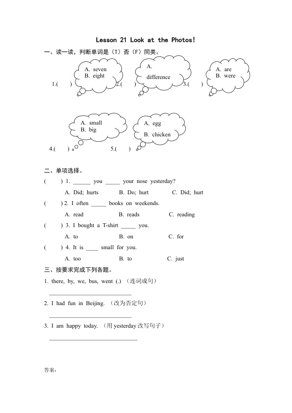 上一篇:课时练Unit 4 Did you have a nice trip - Lesson 20
