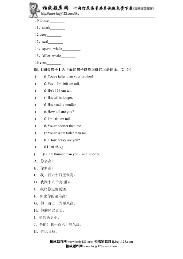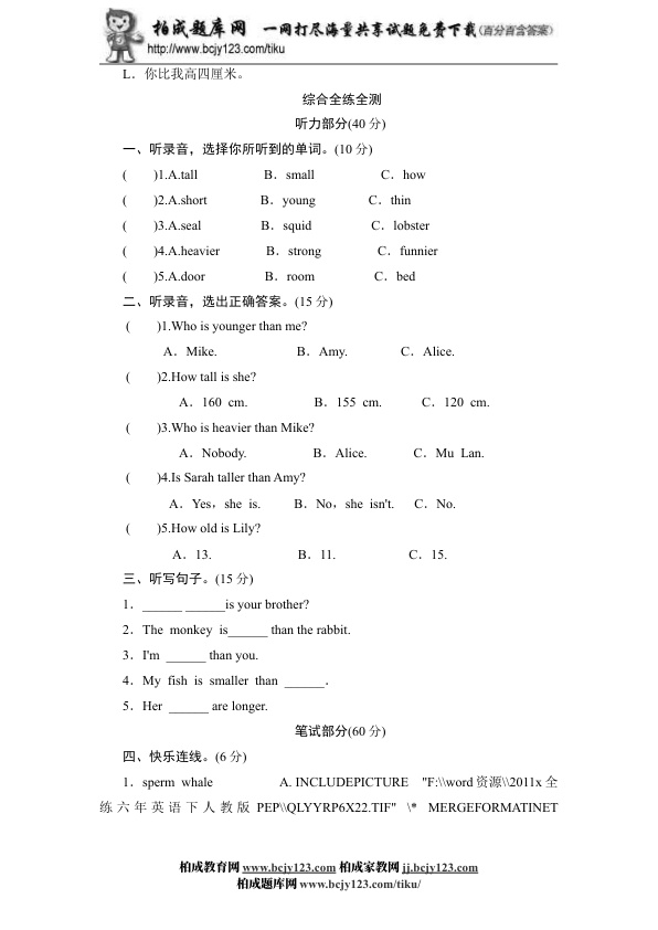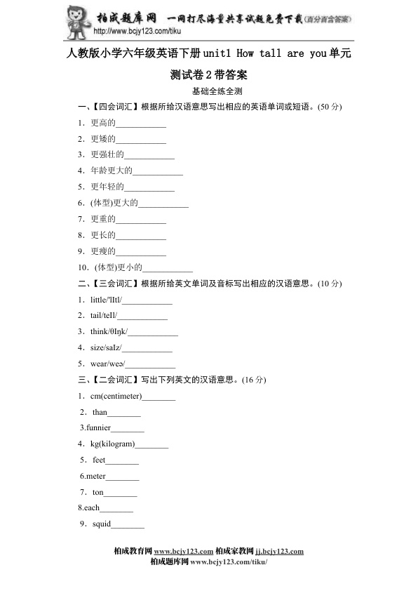 上一篇:人教版小学六年级英语下册unit1 How tall are you单元测试卷1带答案