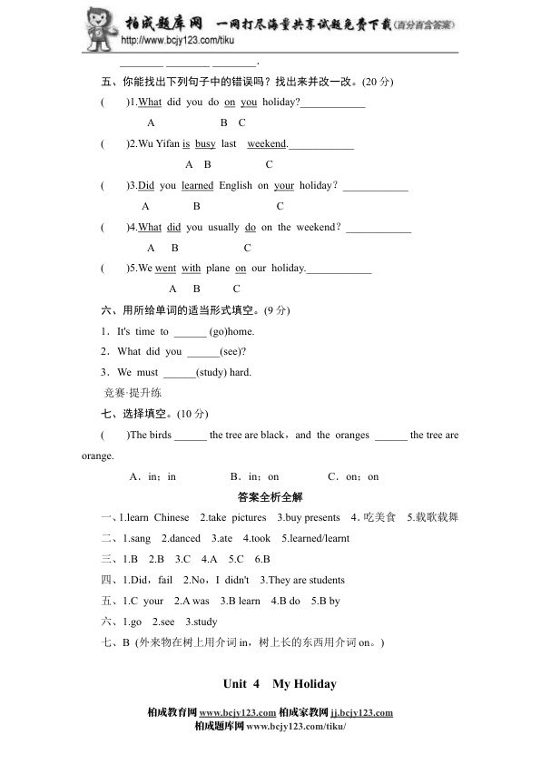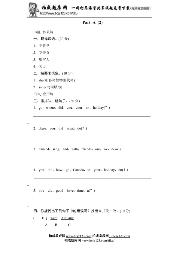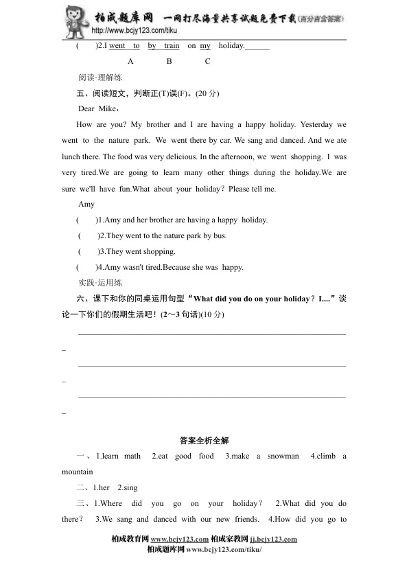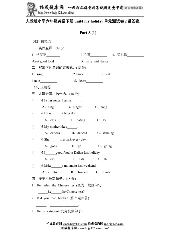 上一篇:人教版小学六年级英语下册unit4 my holiday单元测试卷1带答案