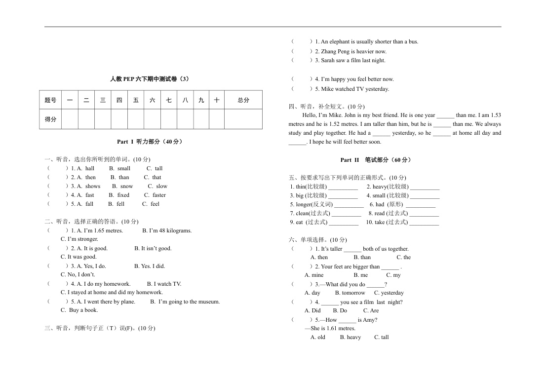 下一篇:人教PEP六下期中测试卷(4)及答案
