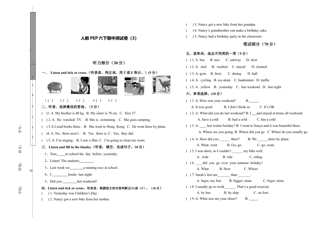 下一篇:人教PEP版英语六年级下册期中测试卷(二)及答案