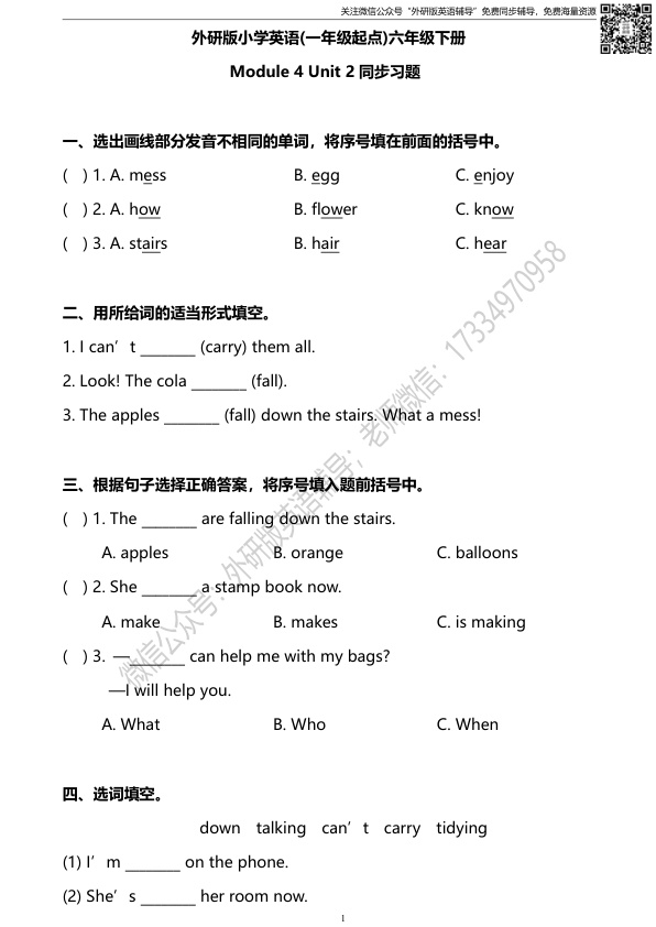 上一篇:外研版一起点六年级下册M4U1同步练习及答案