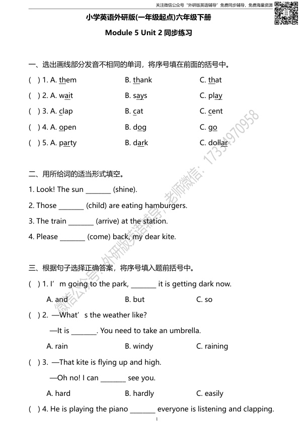 上一篇:外研版一起点六年级下册M5U1同步练习及答案