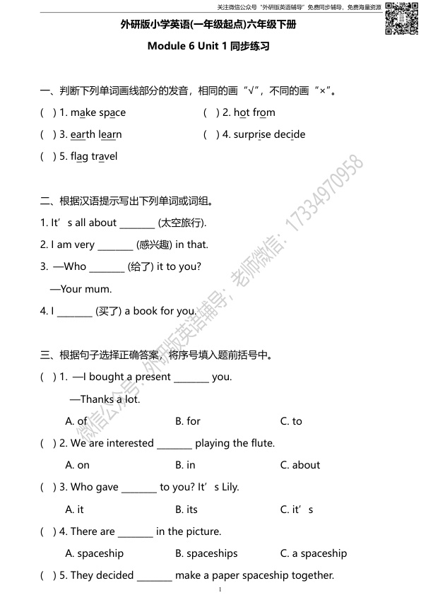 下一篇:外研版一起点六年级下册M6U2同步练习及答案