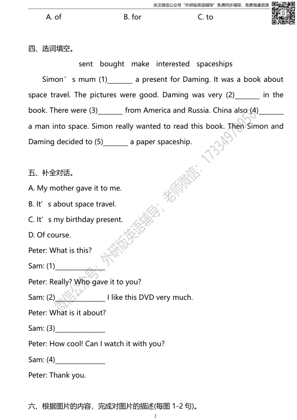 上一篇:外研版一起点六年级下册M5U2同步练习及答案