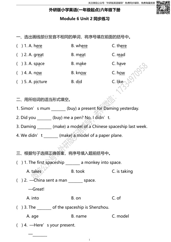 上一篇:外研版一起点六年级下册M6U1同步练习及答案