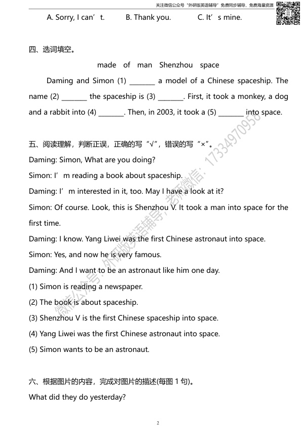 下一篇:外研版一起点六年级下册M7U1同步练习及答案