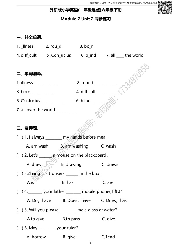 上一篇:外研版一起点六年级下册M7U1同步练习及答案
