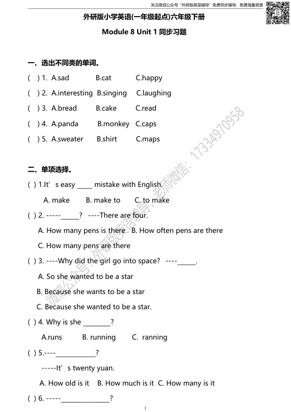 下一篇:外研版一起点六年级下册M8U2同步练习及答案