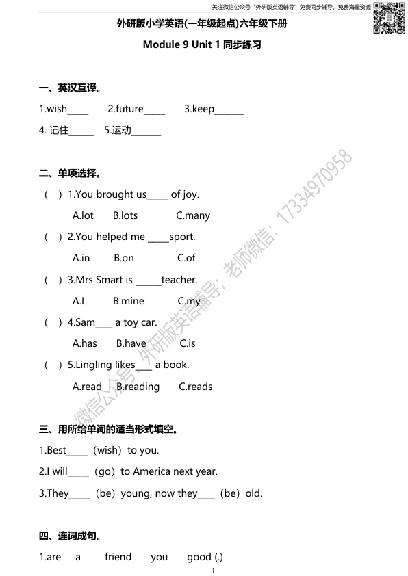 下一篇:外研版一起点六年级下册M9U2同步练习及答案