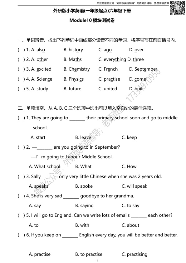 下一篇:外研版一起点六年级下册M1模块测试卷及答案