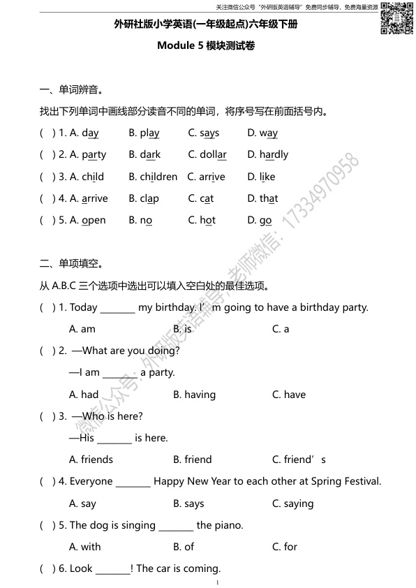 下一篇:外研版一起点六年级下册M6模块测试卷及答案