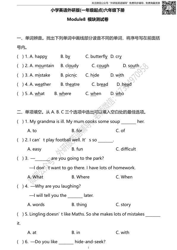下一篇:外研版一起点六年级下册M9模块测试卷及答案