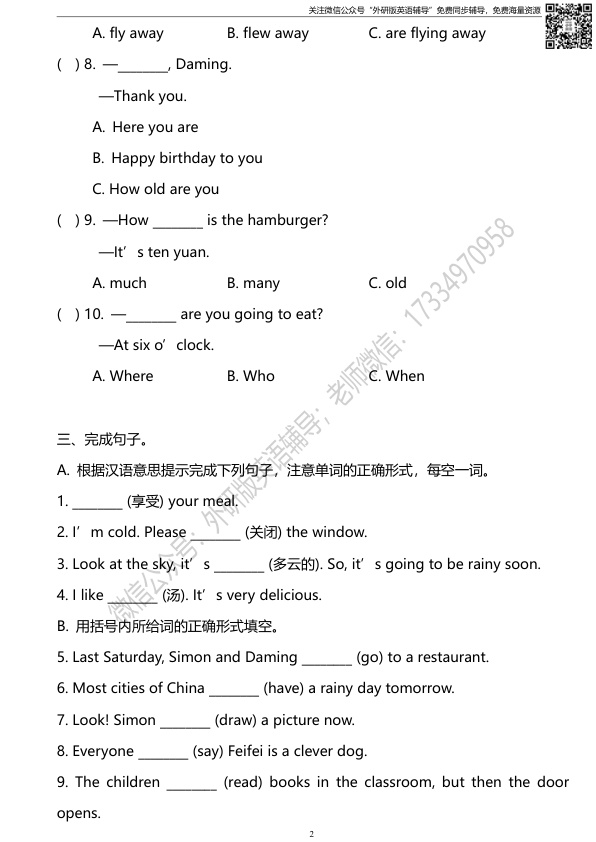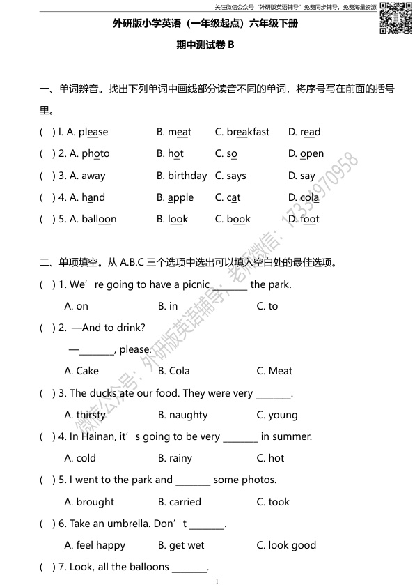 下一篇:外研版一起点六年级下册期末测试卷1及答案