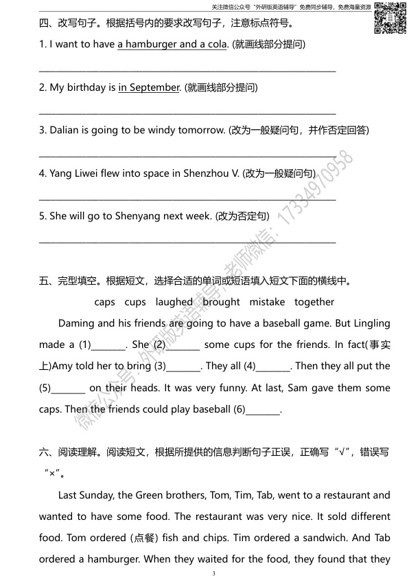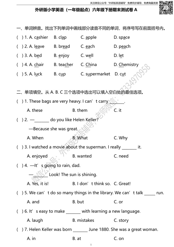 下一篇:外研版一起点六年级下册期末测试卷2及答案