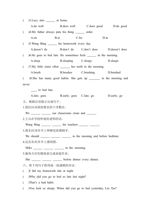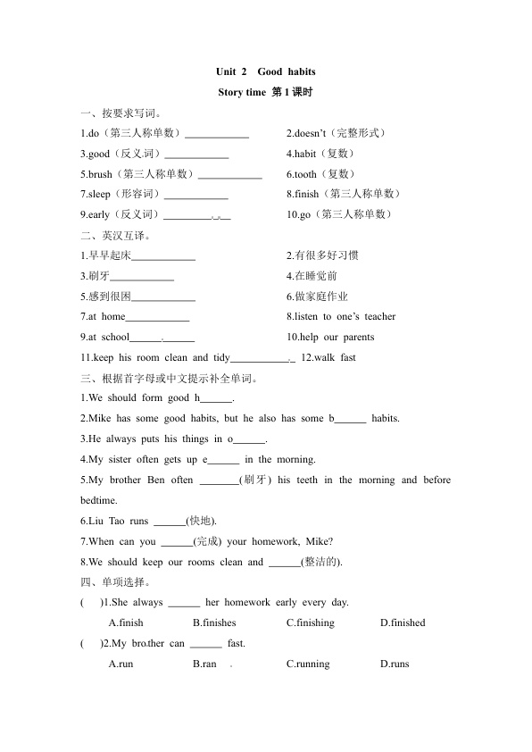 下一篇:【课时练习】六年级下册英语-Unit 2 Good habits 第三课时 Cartoon time- Checkout time 译林三起(word 含答案)