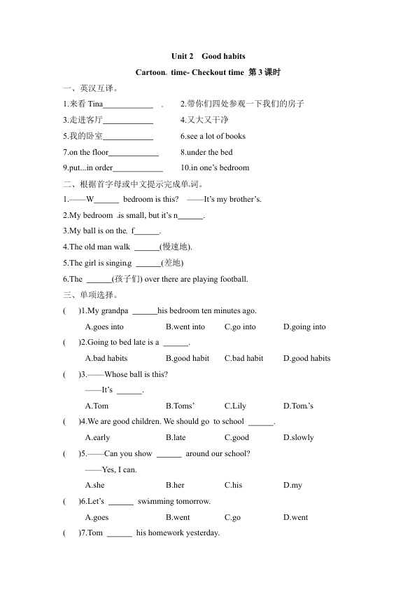 下一篇:【课时练习】六年级下册英语-Unit 2 Good habits 第二课时 Grammar time- Song time 译林三起(word 含答案)