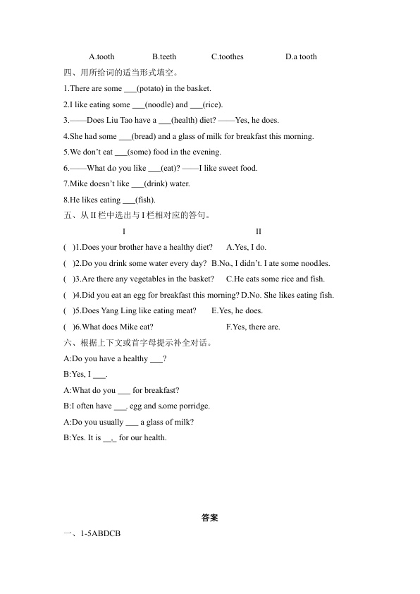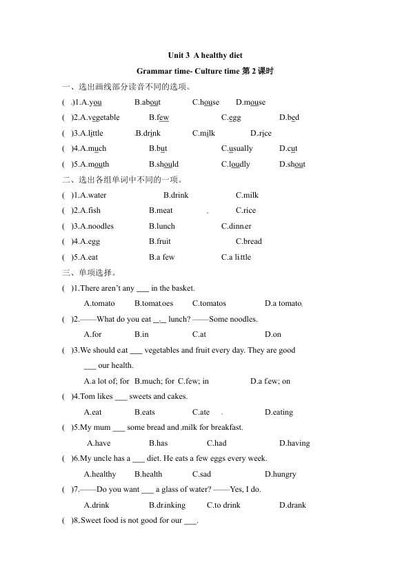 下一篇:【课时练习】六年级下册英语-Unit 3 A healthy diet 第一课时 Story time 译林三起(word 含答案)