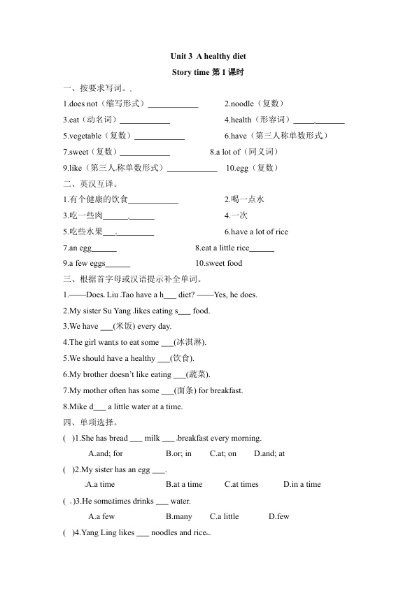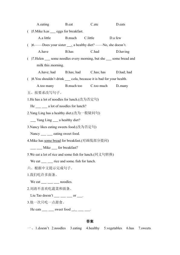 上一篇:【课时练习】六年级下册英语-Unit 3 A healthy diet 第二课时 Grammar time- Culture time 译林三起(word 含答案)