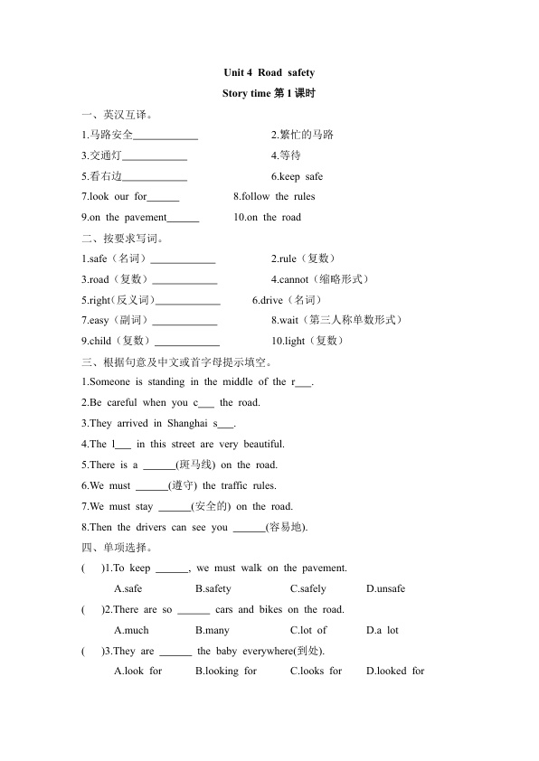 下一篇:【课时练习】六年级下册英语-Unit 4 Road safety 第三课时 Cartoon time- Checkout time 译林三起(word 含答案)