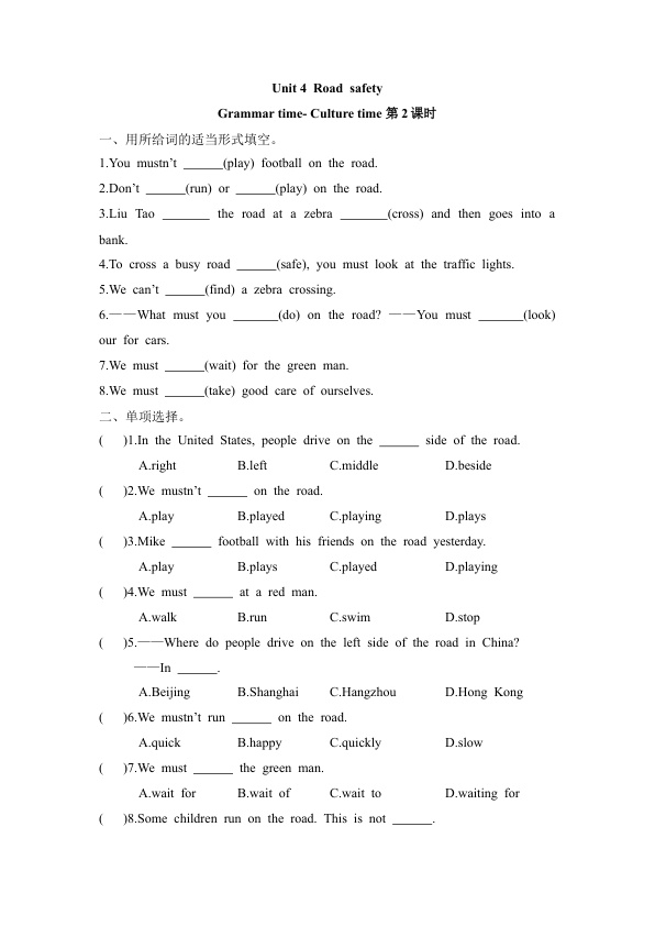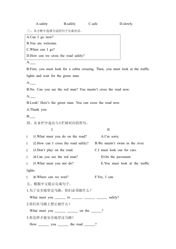 上一篇:【课时练习】六年级下册英语-Unit 4 Road safety 第三课时 Cartoon time- Checkout time 译林三起(word 含答案)
