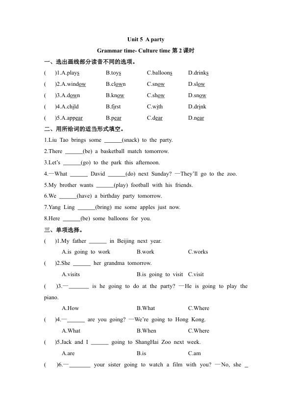 上一篇:【课时练习】六年级下册英语-Unit 5 A party 第三课时 Cartoon time- Checkout time 译林三起(word 含答案)