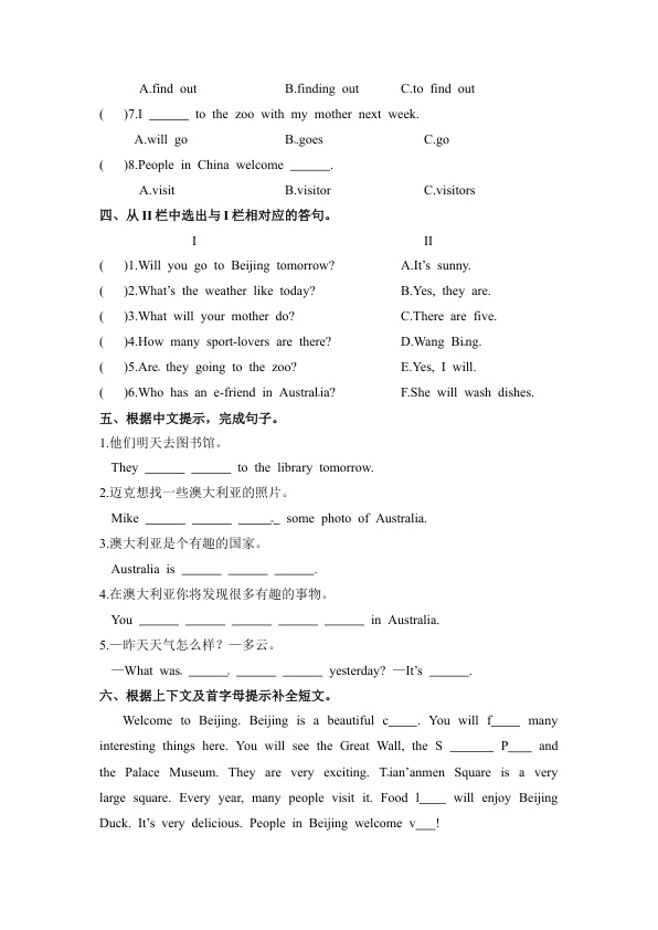 下一篇:【课时练习】六年级下册英语-Unit 7 Summer holiday plans 第一课时 Story time 译林三起(word 含答案)