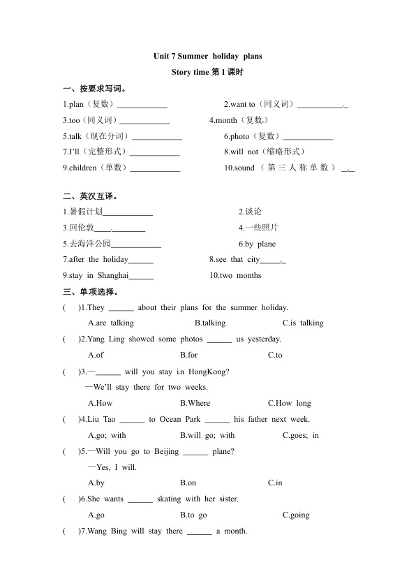 下一篇:【课时练习】六年级下册英语-Unit 7 Summer holiday plans 第三课时 Cartoon time- Checkout time 译林三起(word 含答案)