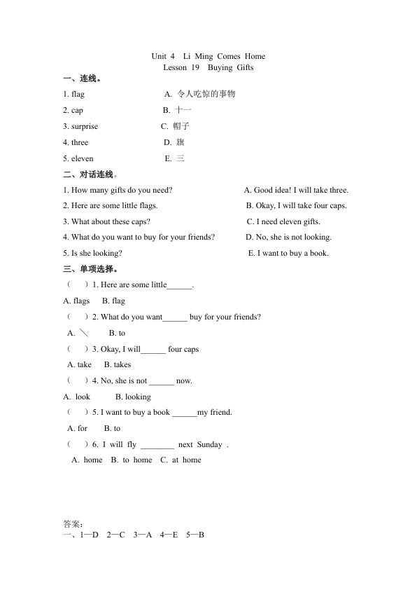 下一篇:冀(三起)六下课时练 Unit 4 Lesson 20