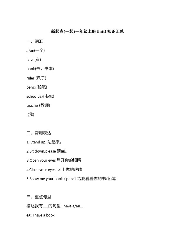 下一篇:人教新起点英语一年级上册Unit2知识点汇总