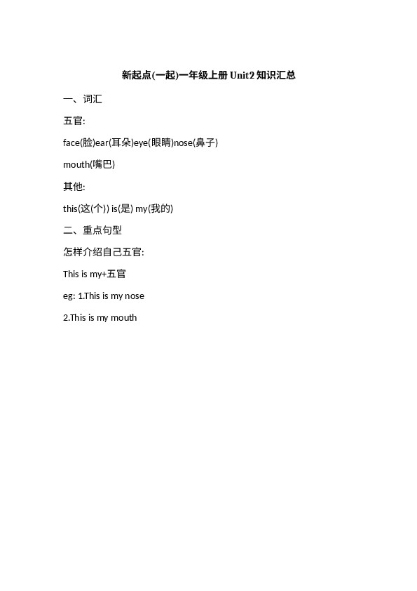 下一篇:人教新起点英语一年级上册Unit3知识点汇总