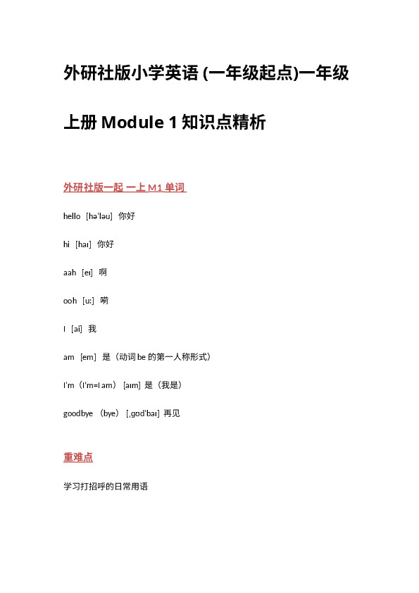 下一篇:外研社版小学英语 (一年级起点)一年级上册Module 2知识点精析