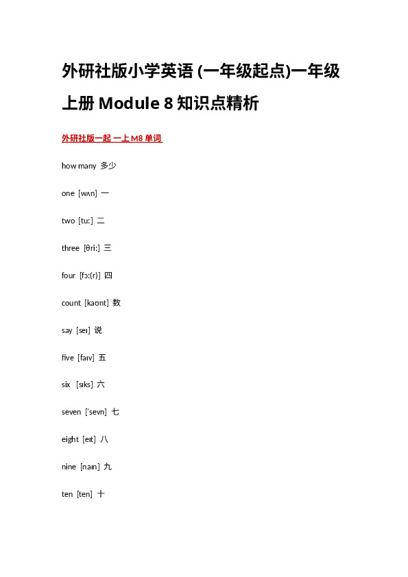 下一篇:外研社版小学英语 (一年级起点)一年级上册Module 9知识点精析
