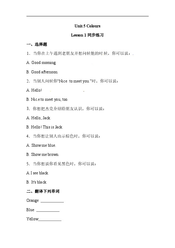 下一篇:一年级上册英语课时练-Unit 6 Fruit Lesson 1 同步练习1 人教新起点(word,含答案)