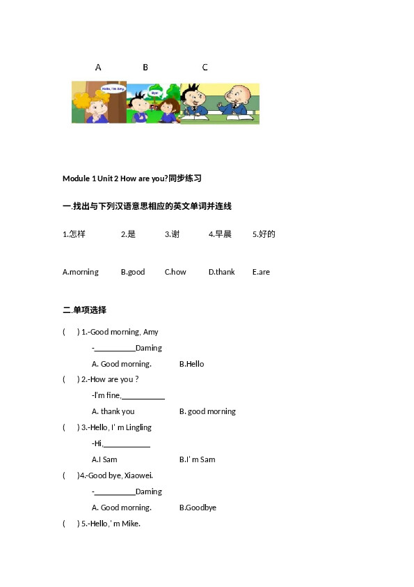 上一篇:外研社版小学英语(一年级起点) 单元练习一年级上册 Module 2