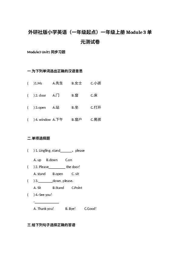下一篇:外研社版小学英语(一年级起点)一年级上册 Module 4 模块测试卷
