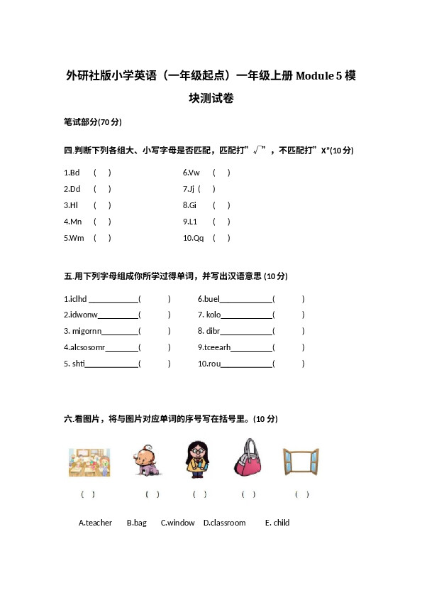 下一篇:外研社版小学英语(一年级起点)一年级上册 Module 6 模块测试卷