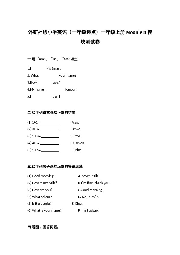 下一篇:外研社版小学英语(一年级起点)一年级上册 Module 9 模块测试卷